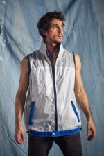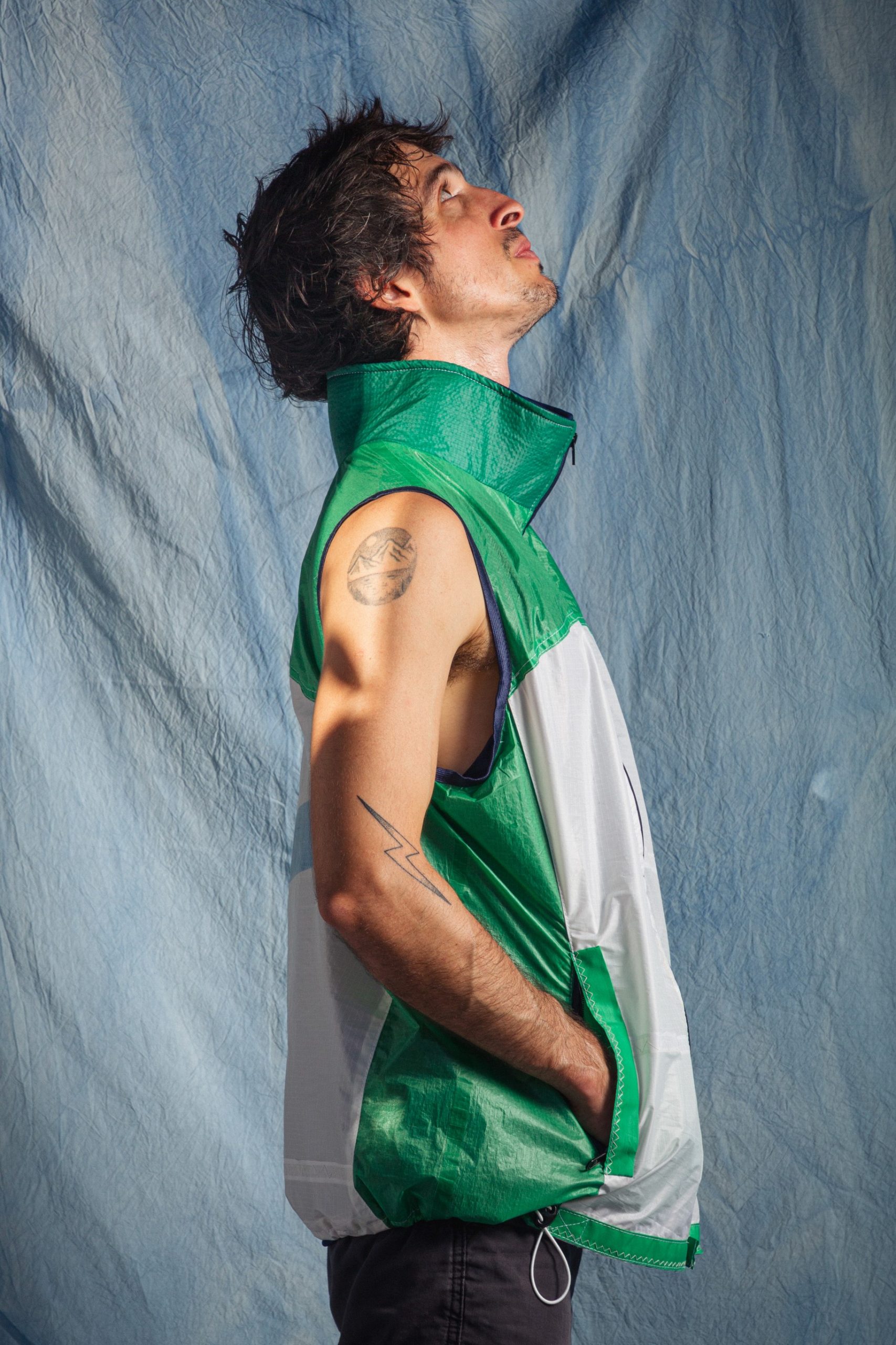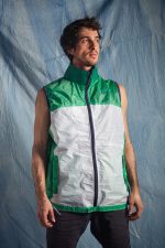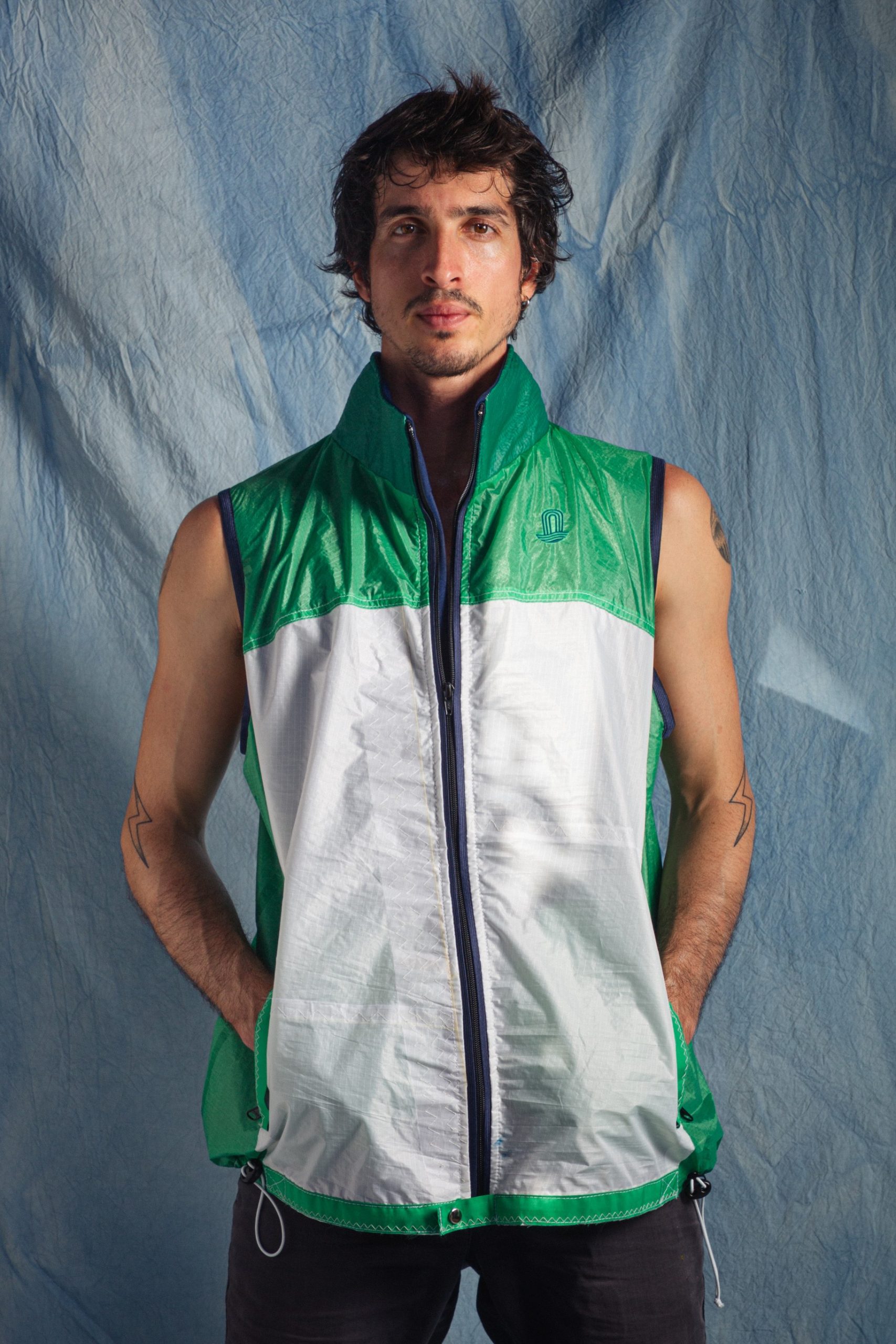 Colete em vela balão de descarte, bolsos laterais com zíper, forro dryfit.